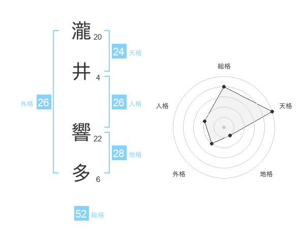 瀧井 響多さんを姓名の画数から五運を鑑定