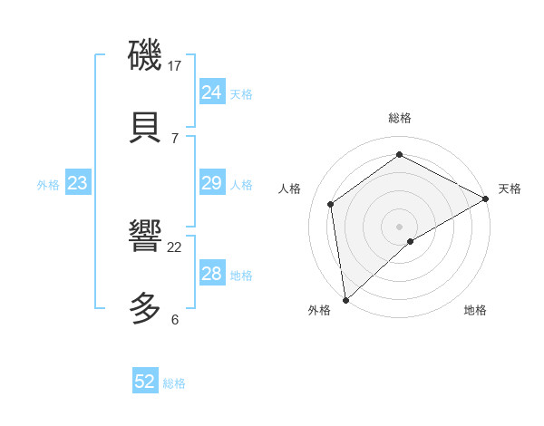 磯貝 響多さんの総格は52画の4点!