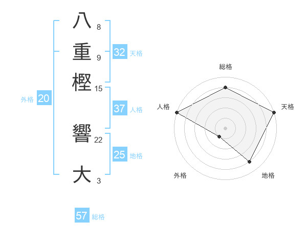 八重樫 響大さんの総格は57画の4点!