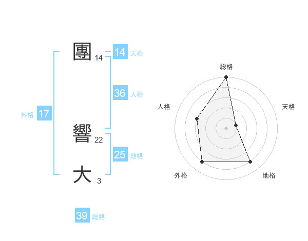 團 響大さんの総格は39画の5点!