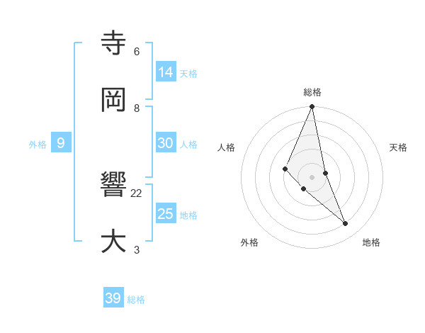 寺岡 響大さんの総格は39画の5点!