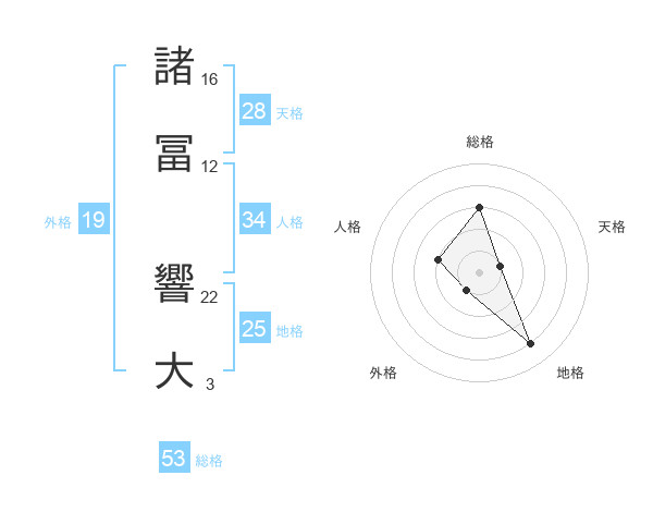 諸冨 響大さんの総格は53画の3点!