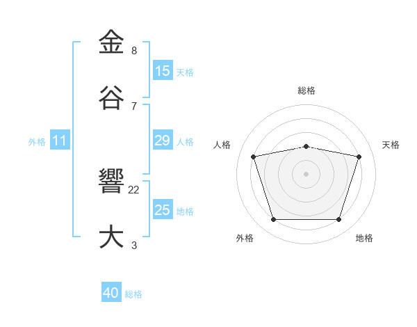 金谷 響大さんの総格は40画の2点!