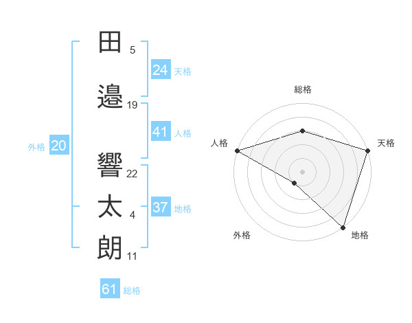 田邉 響太朗さんを姓名の画数から五運を鑑定