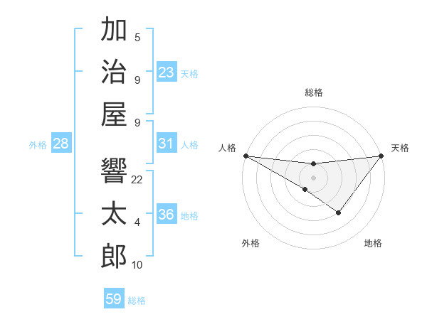 加治屋 響太郎さんを姓名の画数から五運を鑑定