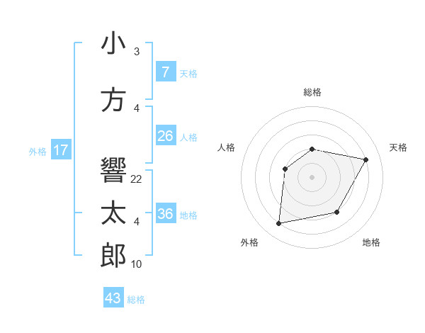小方 響太郎さんの総格は43画の2点!