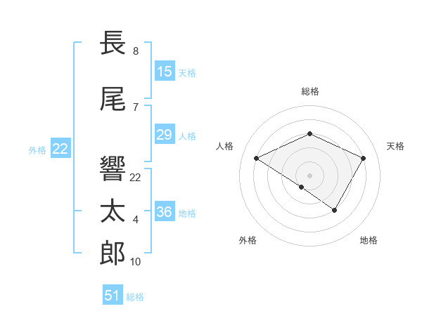 長尾 響太郎さんを姓名の画数から五運を鑑定