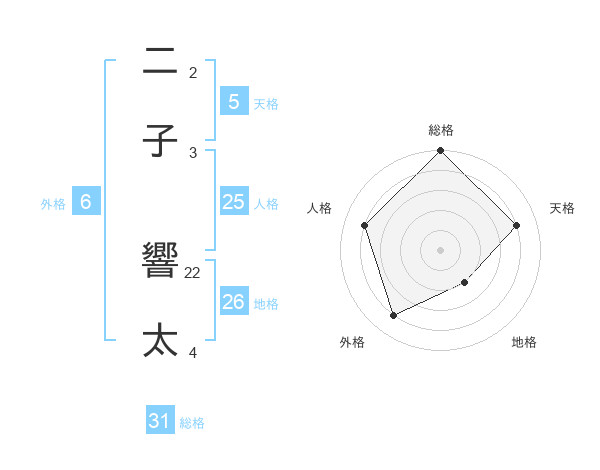 二子 響太さんの総格は31画の5点!