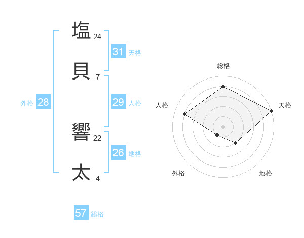 塩貝 響太さんを姓名の画数から五運を鑑定