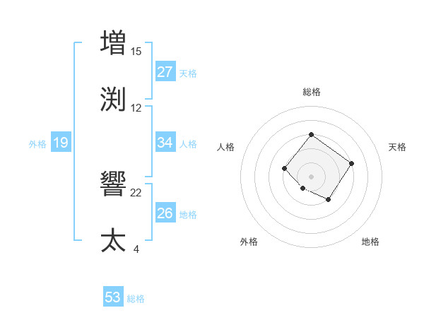増渕 響太さんを姓名の画数から五運を鑑定