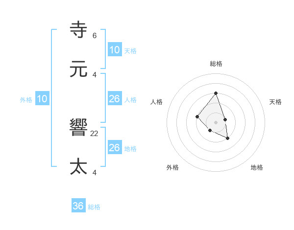 寺元 響太さんを姓名の画数から五運を鑑定