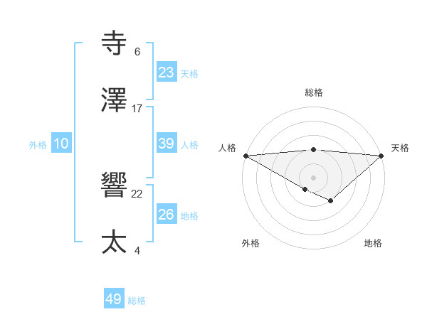 寺澤 響太さんの天格は23画の5点!