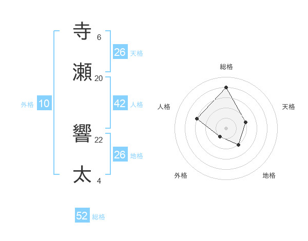 寺瀬 響太さんの総格は52画の4点!