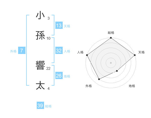 小孫 響太さんの総格は39画の5点!