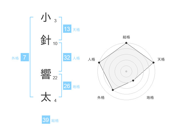 小針 響太さんの総格は39画の5点!