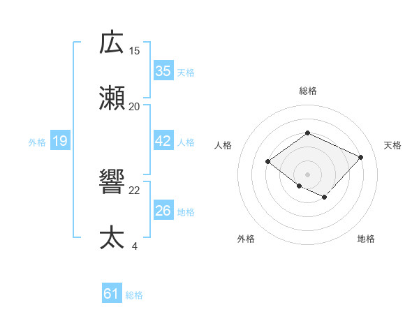広瀬 響太さんを姓名の画数から五運を鑑定