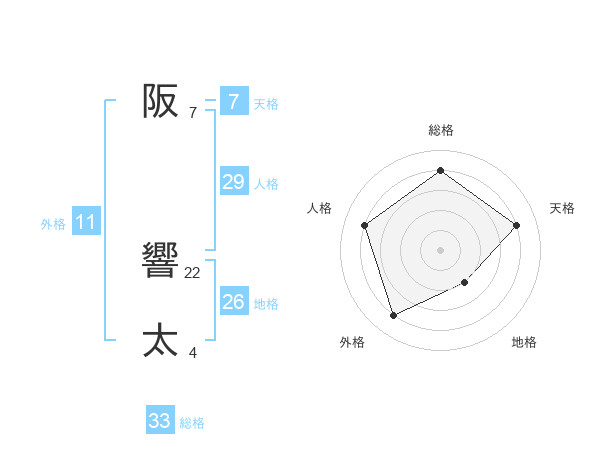 阪 響太さんの総格は33画の4点!