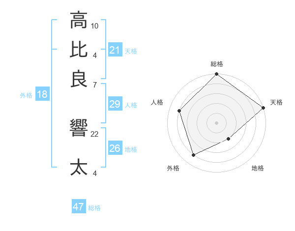 高比良 響太さんの総格は47画の5点!