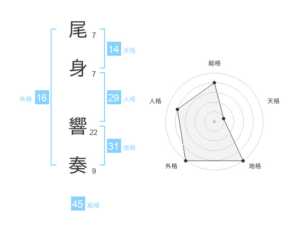 尾身 響奏さんの総格は45画の4点!