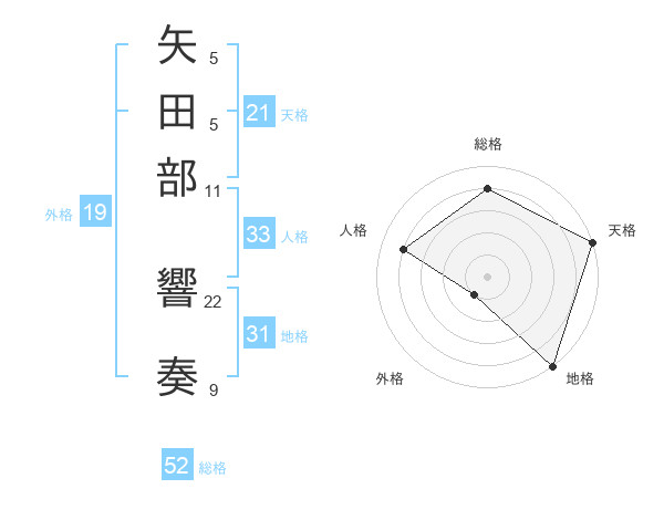 矢田部 響奏さんを姓名の画数から五運を鑑定