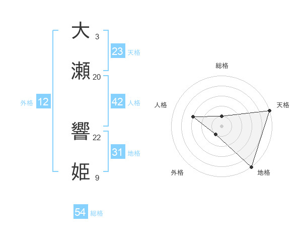 大瀬 響姫さんを姓名の画数から五運を鑑定