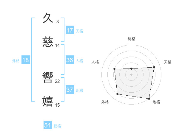 久慈 響嬉さんの総格は54画の1点!
