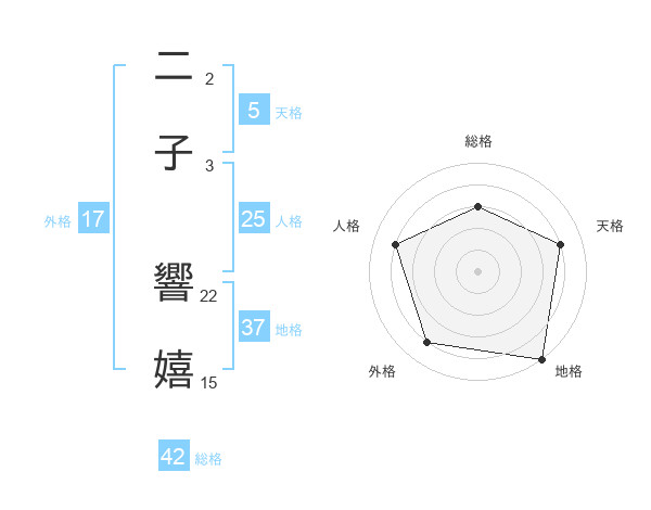 二子 響嬉さんの地格は37画の5点!