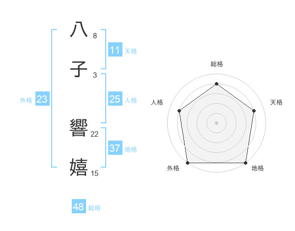八子 響嬉さんを姓名の画数から五運を鑑定