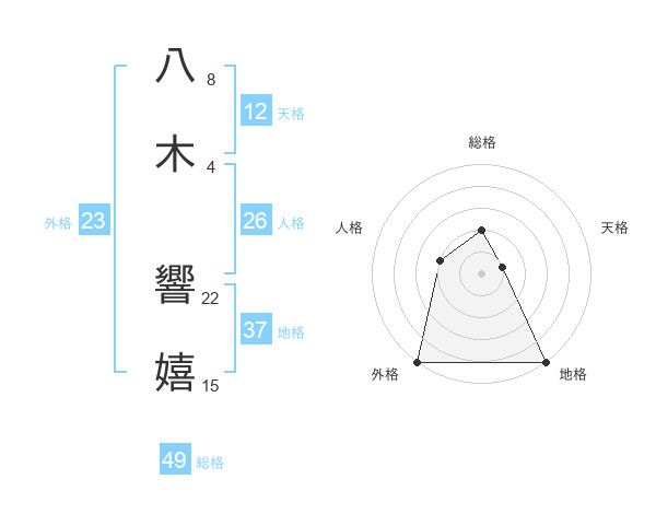 八木 響嬉さんの総格は49画の2点!