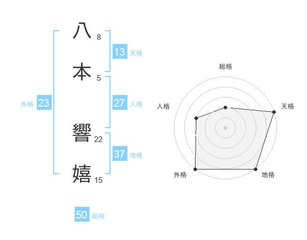 八本 響嬉さんを姓名の画数から五運を鑑定