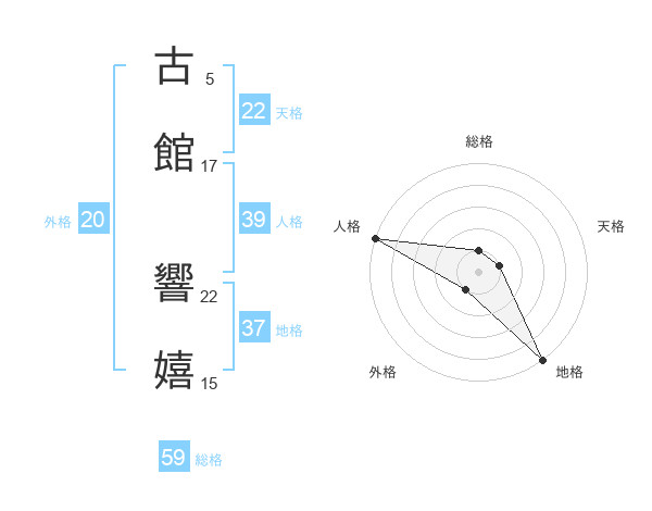古館 響嬉さんの総格は59画の1点!