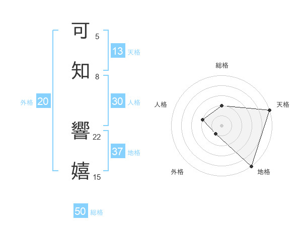 可知 響嬉さんを姓名の画数から五運を鑑定