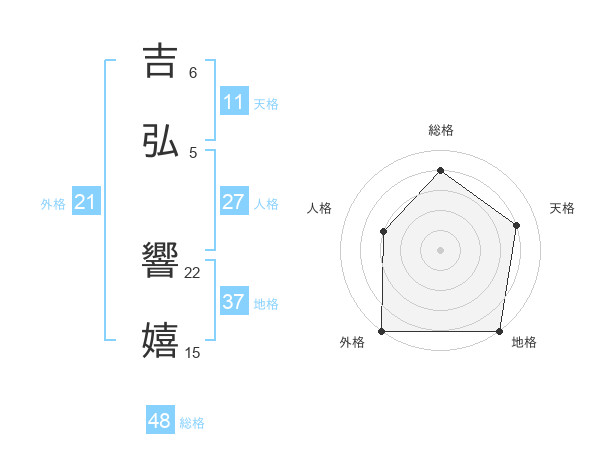 吉弘 響嬉さんの地格は37画の5点!