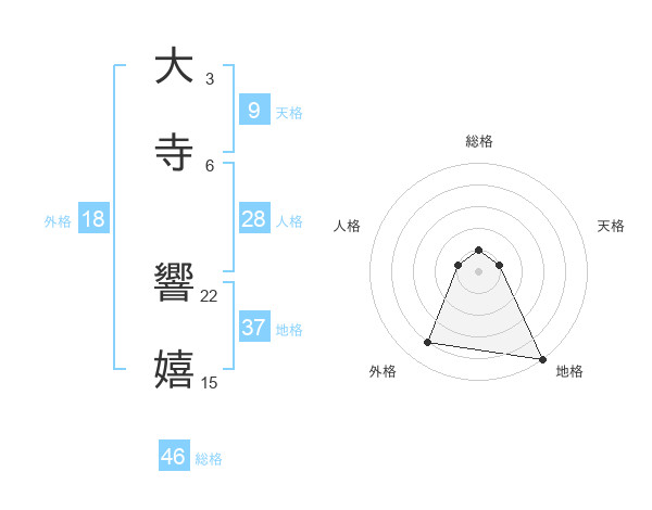 大寺 響嬉さんを姓名の画数から五運を鑑定