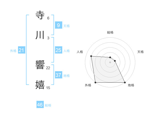 寺川 響嬉さんを姓名の画数から五運を鑑定