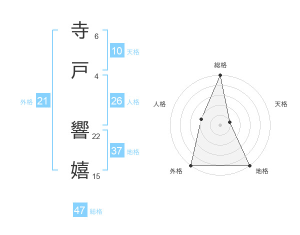 寺戸 響嬉さんを姓名の画数から五運を鑑定