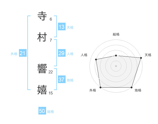 寺村 響嬉さんの外格は21画の5点!