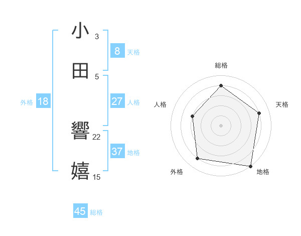 小田 響嬉さんを姓名の画数から五運を鑑定