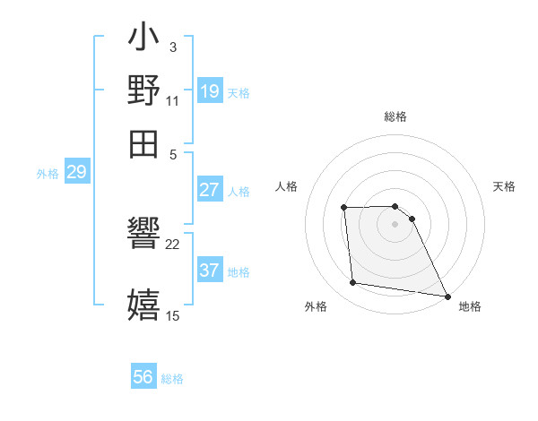 小野田 響嬉さんを姓名の画数から五運を鑑定