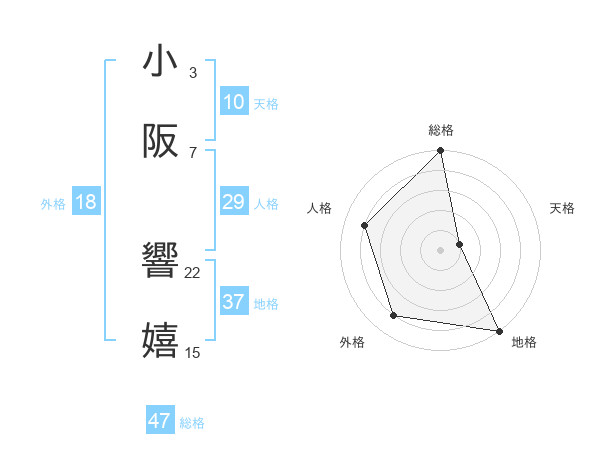 小阪 響嬉さんの総格は47画の5点!