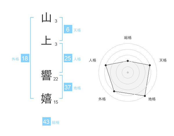 山上 響嬉さんを姓名の画数から五運を鑑定