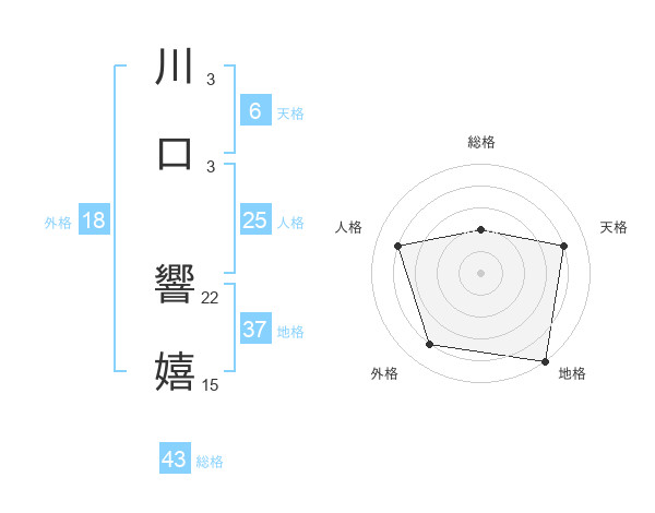 川口 響嬉さんを姓名の画数から五運を鑑定