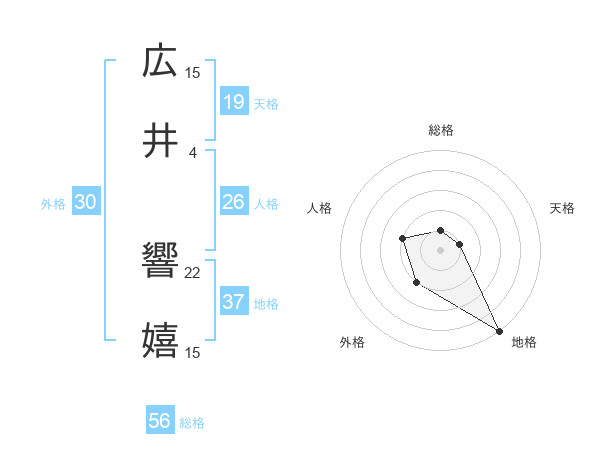 広井 響嬉さんの地格は37画の5点!