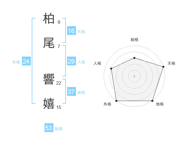 柏尾 響嬉さんの外格は24画の5点!