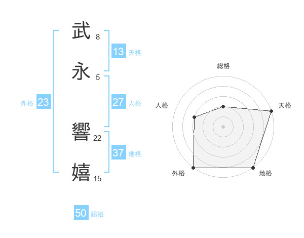 武永 響嬉さんを姓名の画数から五運を鑑定