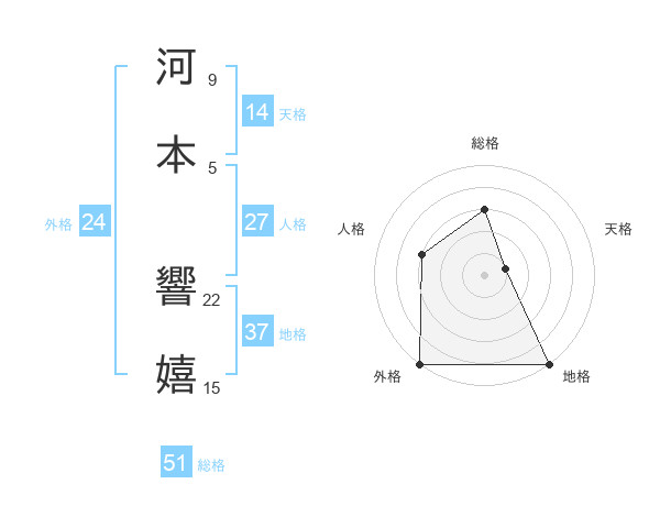 河本 響嬉さんの総格は51画の3点!