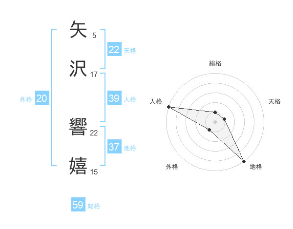 矢沢 響嬉さんを姓名の画数から五運を鑑定