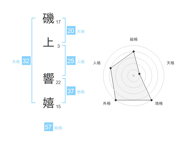 磯上 響嬉さんを姓名の画数から五運を鑑定