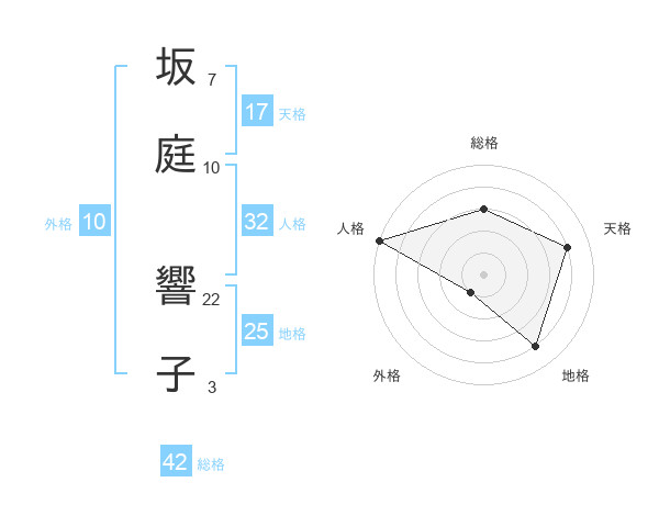 坂庭 響子さんを姓名の画数から五運を鑑定
