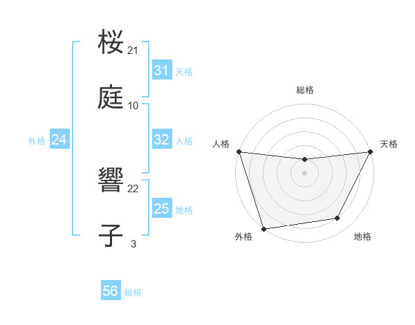 桜庭 響子さんの総格は56画の1点!